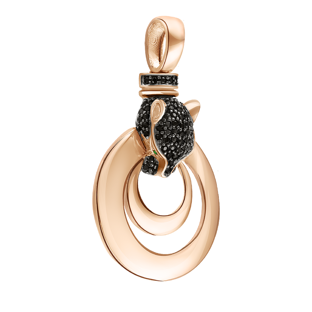 Einzigartiger Anhänger mit Leopardenkopf aus russischem Rotgold 585, mit schwarzen und grünen Zirkonia, Ringdurchmesser ≈ 23 mm, Höhe ≈ 38 mm