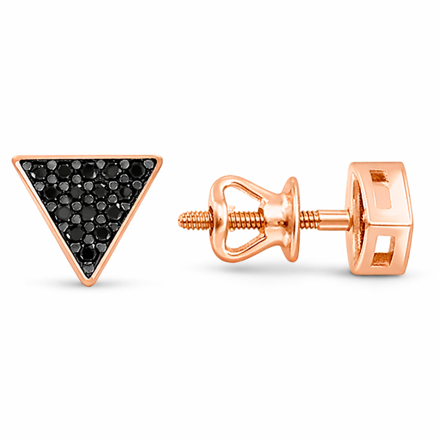Diese modernen Ohrstecker in geometrischer Dreiecksform verbinden klare Linien mit ausdrucksstarker Eleganz.Gefertigt aus russischem Rotgold 585, faszinieren sie durch den luxuriösen Kontrast zwischen warmem Goldglanz und der Tiefe der 30 funkelnden schwarzen Zirkonia.