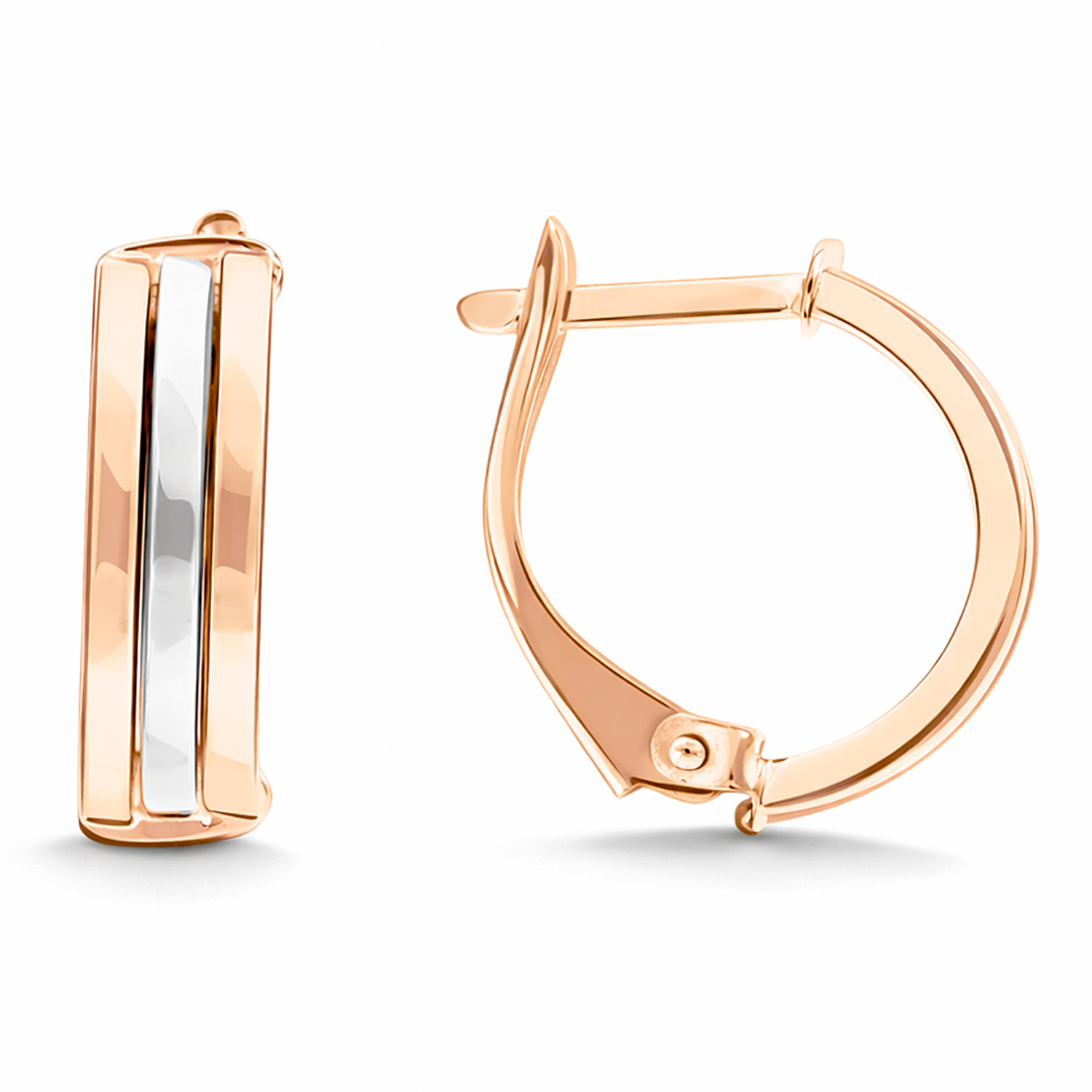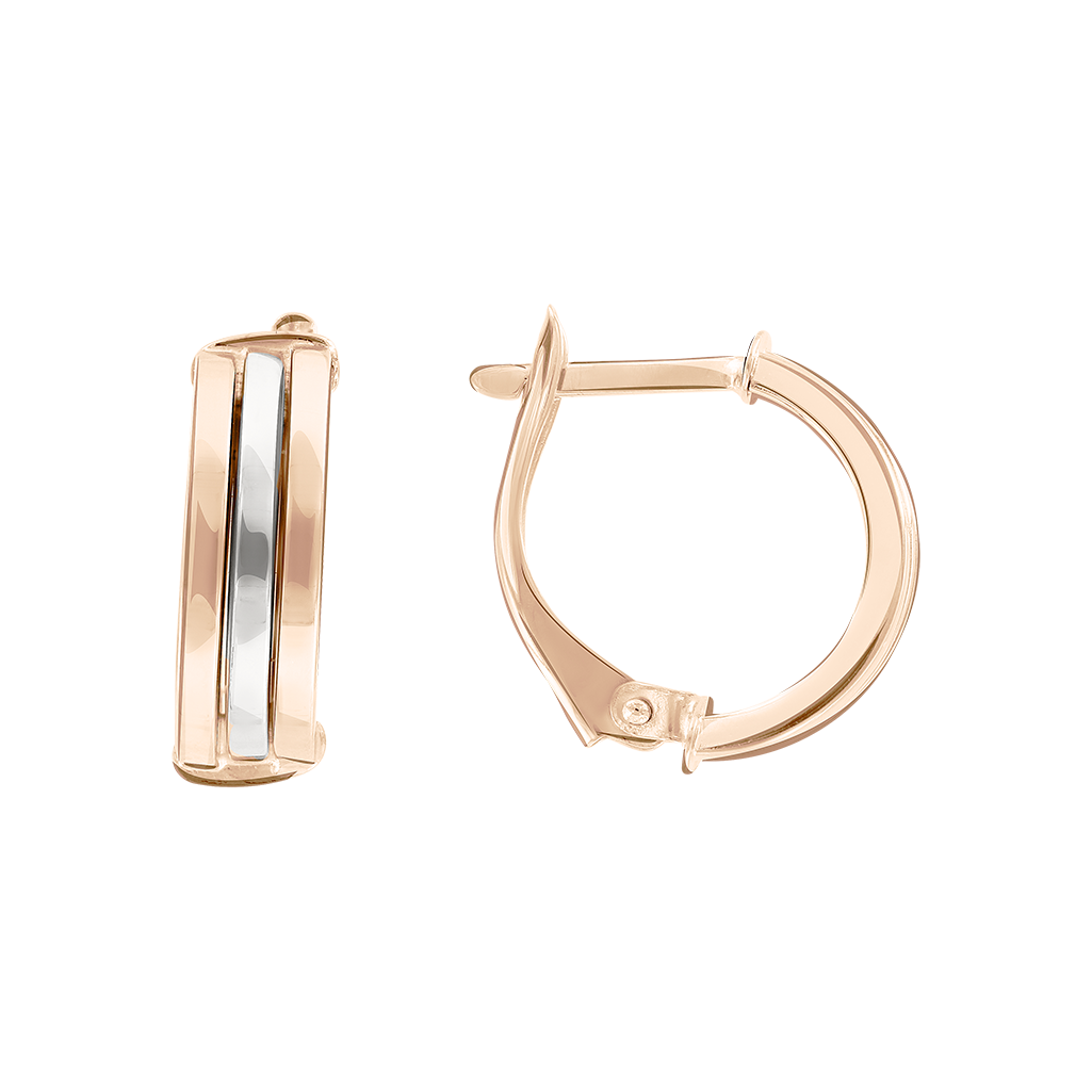 Lakonische Ohrringe von leicht abgerundeter Form sind mit einem englischen Schloss ausgestattet. Es sieht einfach, unaufdringlich und stilvoll aus, das Schloss wird zu einem Teil des Designs des Schmucks. Ohrringe in Form von 3 dünnen, miteinander verbundenen Linien, die in der Mitte mit einer leichten Rhodinierung verziert sind. Der metallische Glanz von Rhodium vor dem Hintergrund von Rotgold verleiht dem Schmuck eine besondere Ästhetik. Die leichte Form und die dünnen Linien verleihen den Ohrringen ein raffiniertes und anmutiges Aussehen. Ein Modell für alle, die Zurückhaltung und Eleganz in allem bevorzugen. Diese Accessoires sind sowohl lakonisch als auch spektakulär, statisch und konzeptionell. Diese Ohrringe sind universell einsetzbar - sie passen zum alltäglichen Stil und sind eine einzigartige Ergänzung zum Business-Image. Die Ohrringe sind aus hochwertigem Gold gefertigt, das auch nach vielen Jahren aktiven Gebrauchs sein attraktives Aussehen bewahrt. Tragen Sie diesen Schmuck mit Selbstvertrauen und verleihen Sie jedem Moment Ihres Lebens Glanz und Eleganz!GPSR-Informationen