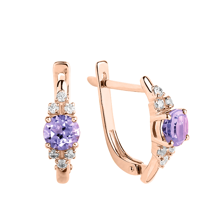 Wunderschöne Ohrringe aus 585 Rotgold mit Amethysten und Zirkonia