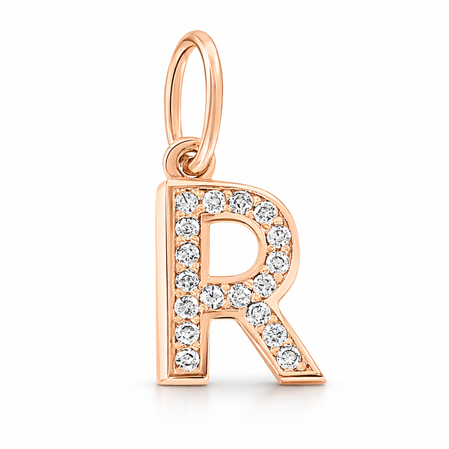 Exquisiter Buchstabenanhänger "R" aus 585er Rotgold mit Zirkonia, Höhe ca. 17 mm