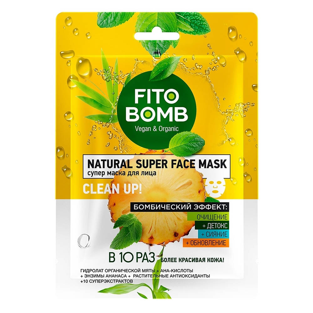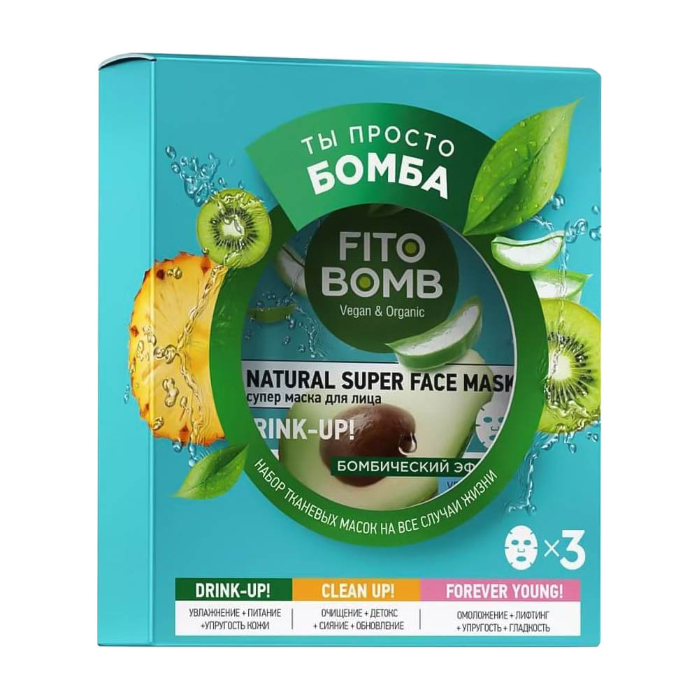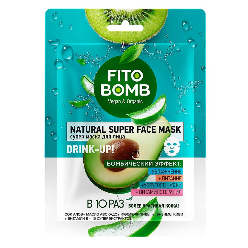 Die Maske kann aufgrund der enthaltenen AHA-Säuren kribbeln. - Tuch-Gesichtsmaske feuchtigkeitsspendend + nährend + straffend + Vitamintherapie: Die Fito Bomb Gesichtsmaske wurde entwickelt, um die Haut tief und langfristig mit Feuchtigkeit und Vitaminen zu sättigen. Ein organischer, super-nährender Phytokomplex aus Avocadoöl, Aloe-Saft, Phospholipiden und Kiwi-Enzymen hat eine starke Wirkung bei der qualitativen Verbesserung der Haut: die Haut wird glatt, straff, tonisiert und mit jugendlicher Energie gefüllt.