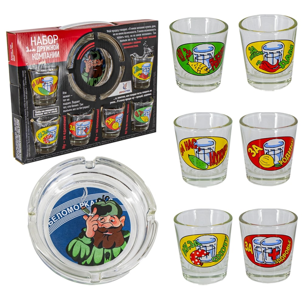 - Inhalt: 6 Schnapsgläser (je 50 ml) und 1 Aschenbecher