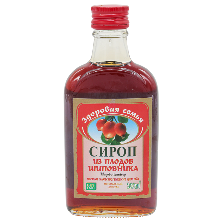 Hagebutte enthält eine große Menge an Vitaminen: B1, B2, C, PP, K sowie Kohlenhydrate, Pektin und organische Säuren. Hagebuttensirup wird als Vitaminkomplex zur Vorbeugung von Hypovitaminose sowie bei Appetitlosigkeit, bei Stauung der Gallenblase (vor allem bei Kindern und älteren Menschen), bei Erkältungen, bei erhöhtem psychischen und physischen Stress empfohlen. Hagebutte hilft die Stoffwechselprozesse und die Funktion der endokrinen Drüsen und hämatopoetischen Organe zu stimulieren und trägt dazu bei, das Immunsystem zu stärken und die Widerstandsfähigkeit des Körpers gegen die schädlichen Einflüsse der äußeren Umgebung zu erhöhen.Einnahme: Erwachsene - 1-2 Esslöffel 2-3 mal pro Tag; Kinder von 2 bis 3 Jahren - 1/2 Teelöffel, Kinder von 3 bis 6 Jahre - 1 Teelöffel, Kinder von 6 bis 12 Jahre - 1 Esslöffel 2-3 mal pro Tag.