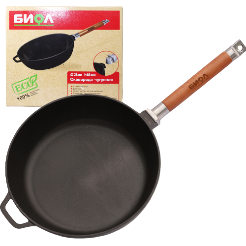 Die Biol-Bratpfanne aus Gusseisen mit abnehmbarem Griff eignet sich zum Braten, Schmoren, Garen und sogar zum Backen.Der dicke Boden und die dicken Wände der Pfanne sorgen für eine hervorragende Wärmeleitfähigkeit und die darin gegarten Speisen erhalten nicht nur einen unverwechselbaren Geschmack und Duft, sondern auch eine köstliche goldene Kruste.