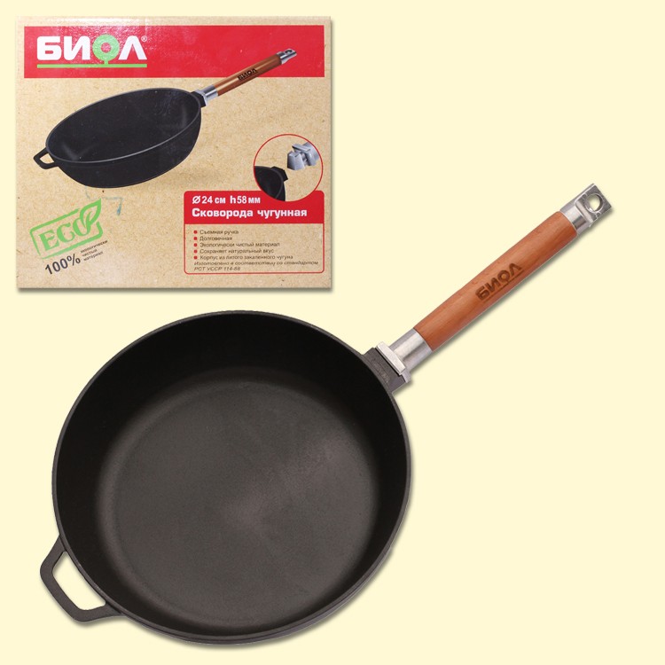 Gusseisen-Bratpfanne "Sotejnik" mit abnehmbarem Griff, für alle Herdarten Ø 24 cm