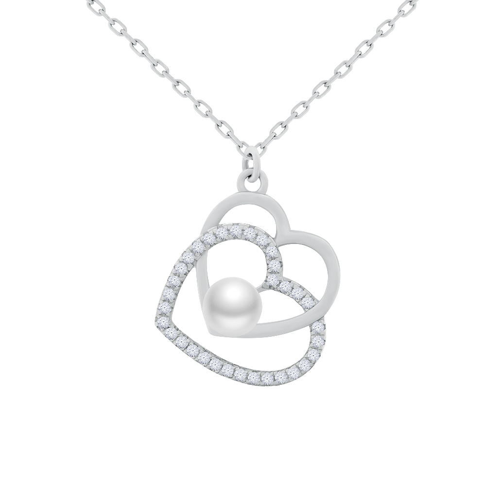 Halskette mit Herz-Anhänger mit Perle und Zirkonia, aus 925 Silber