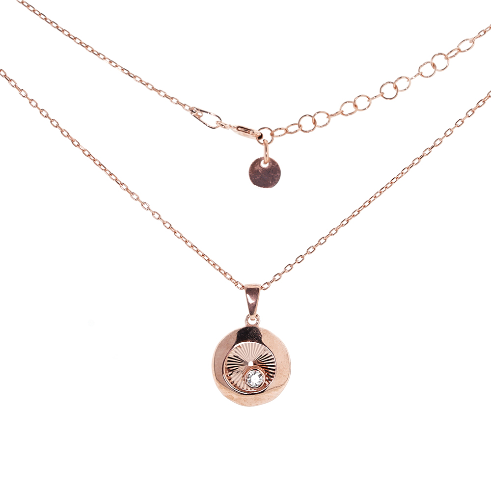 Halskette mit rundem Anhänger aus 925 Silber mit Swarovski-Kristall, rotvergoldet