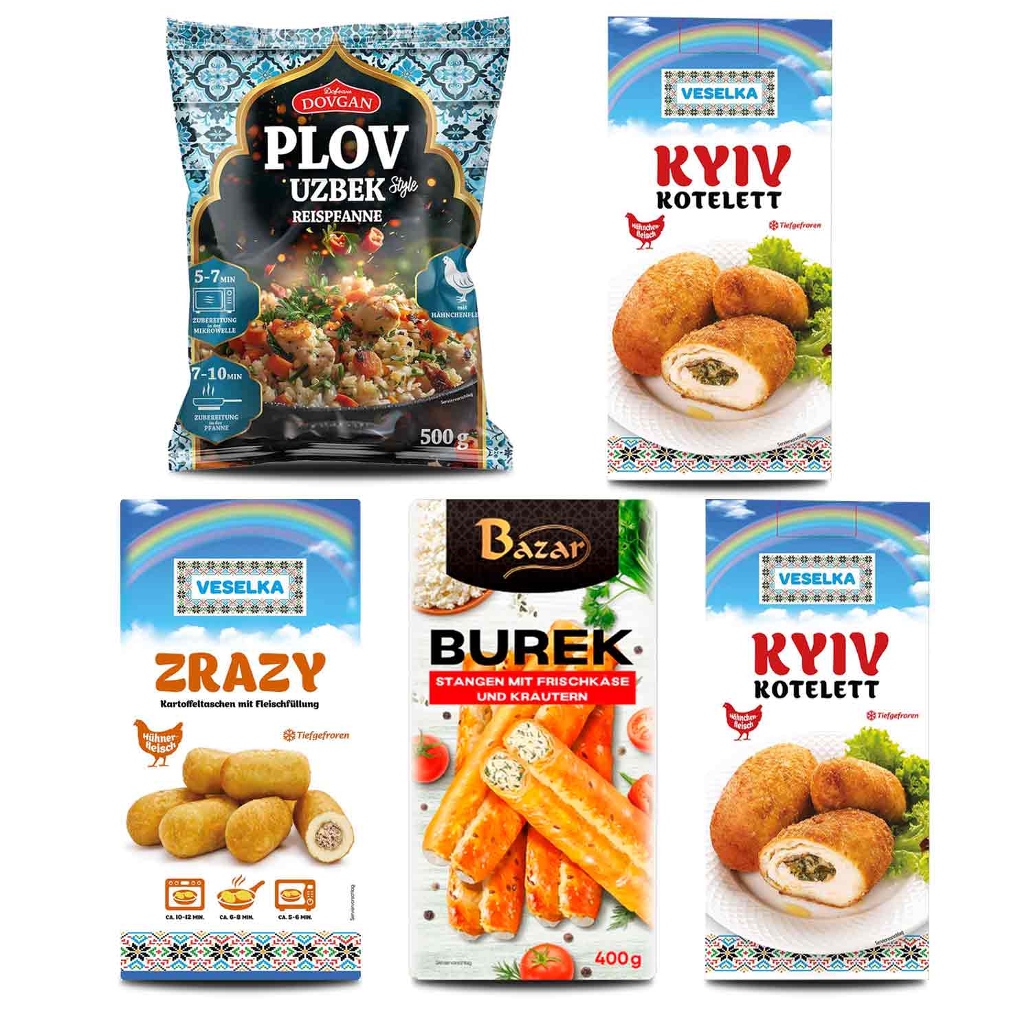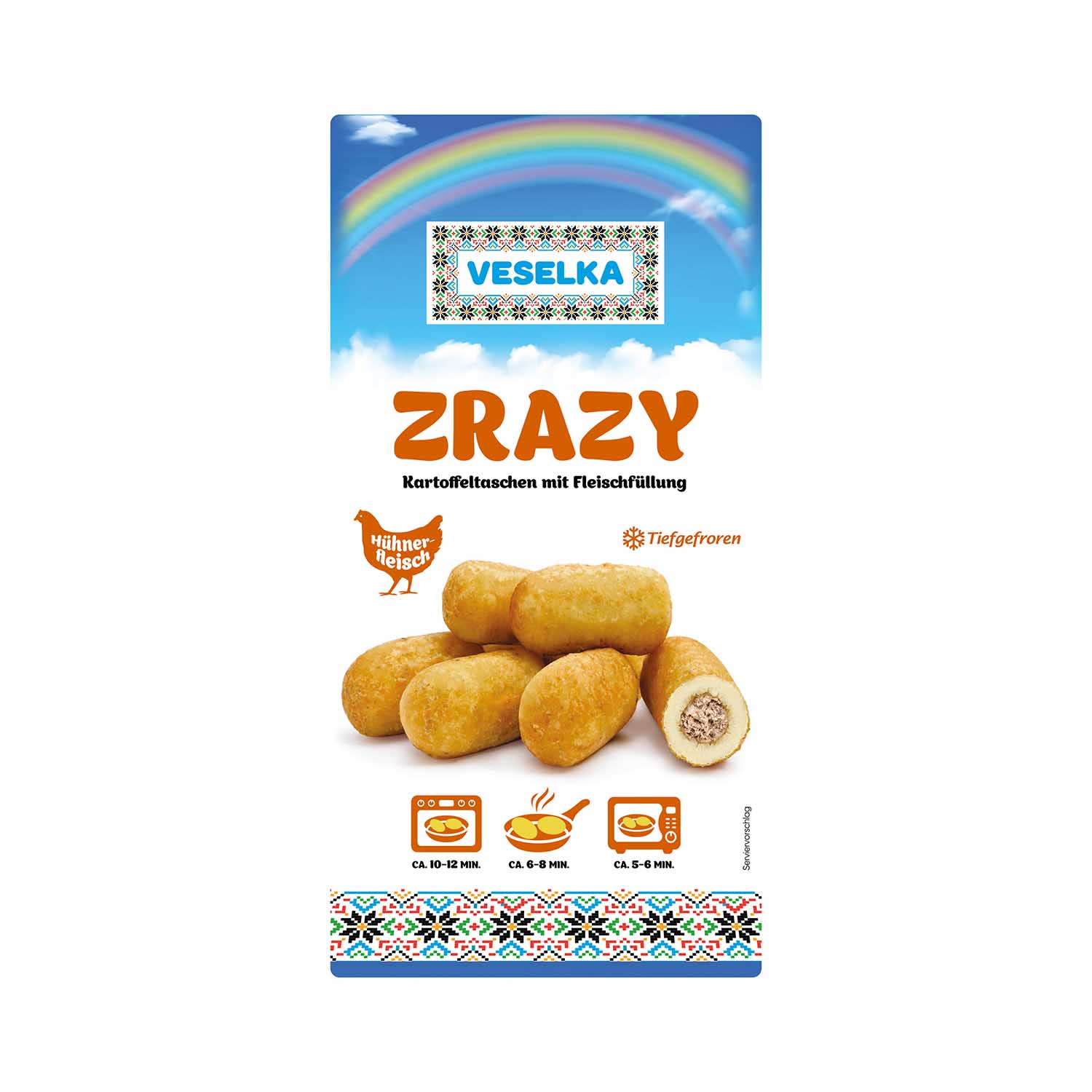 - VESELKA Zrazy mit Fleischfüllung (360 g): Gefüllte Kartoffeltaschen mit herzhafter Hackfleischfüllung – ein Klassiker aus der ukrainischen Küche.