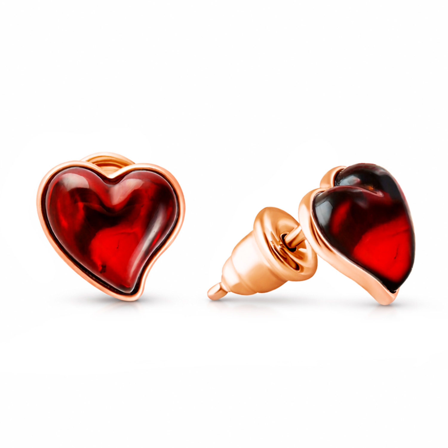 Herzförmige Ohrstecker aus vergoldetem 925 Sterlingsilber mit Bernsteinen
