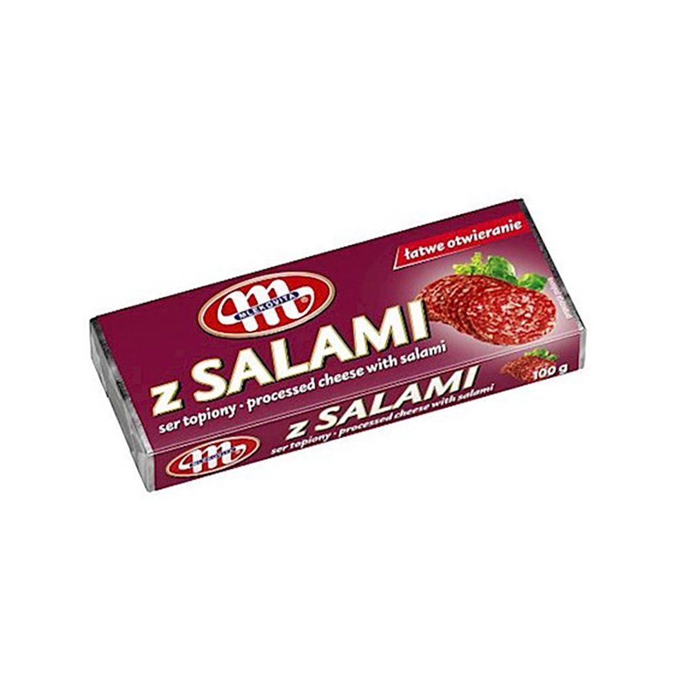 - Mlekovita Schmelzkäse mit Salami (100 g): Cremiger Streichkäse mit Salami-Geschmack – ideal fürs Brötchen oder zum Überbacken.