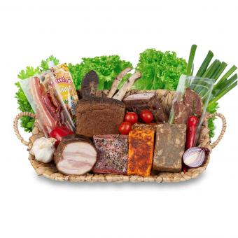 - Speck vom Fass „Bochkovoe“ (ca. 300 g) – traditionell gereift für eine kräftige Note.