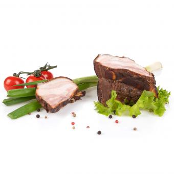 - Schweinebauch mit Rippchen (ca. 400 g) – saftig, über Holz geräuchert für ein rustikales Aroma.