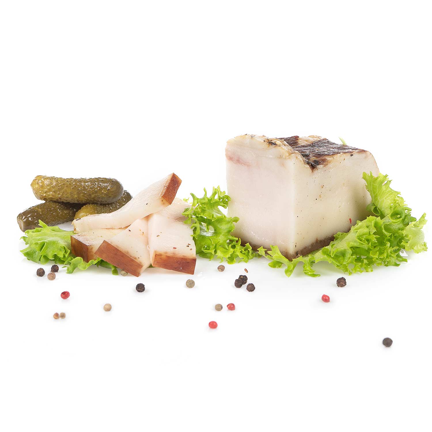 - Schichten-Speck über Holz geräuchert (ca. 300 g) – butterzart mit intensivem Raucharoma.