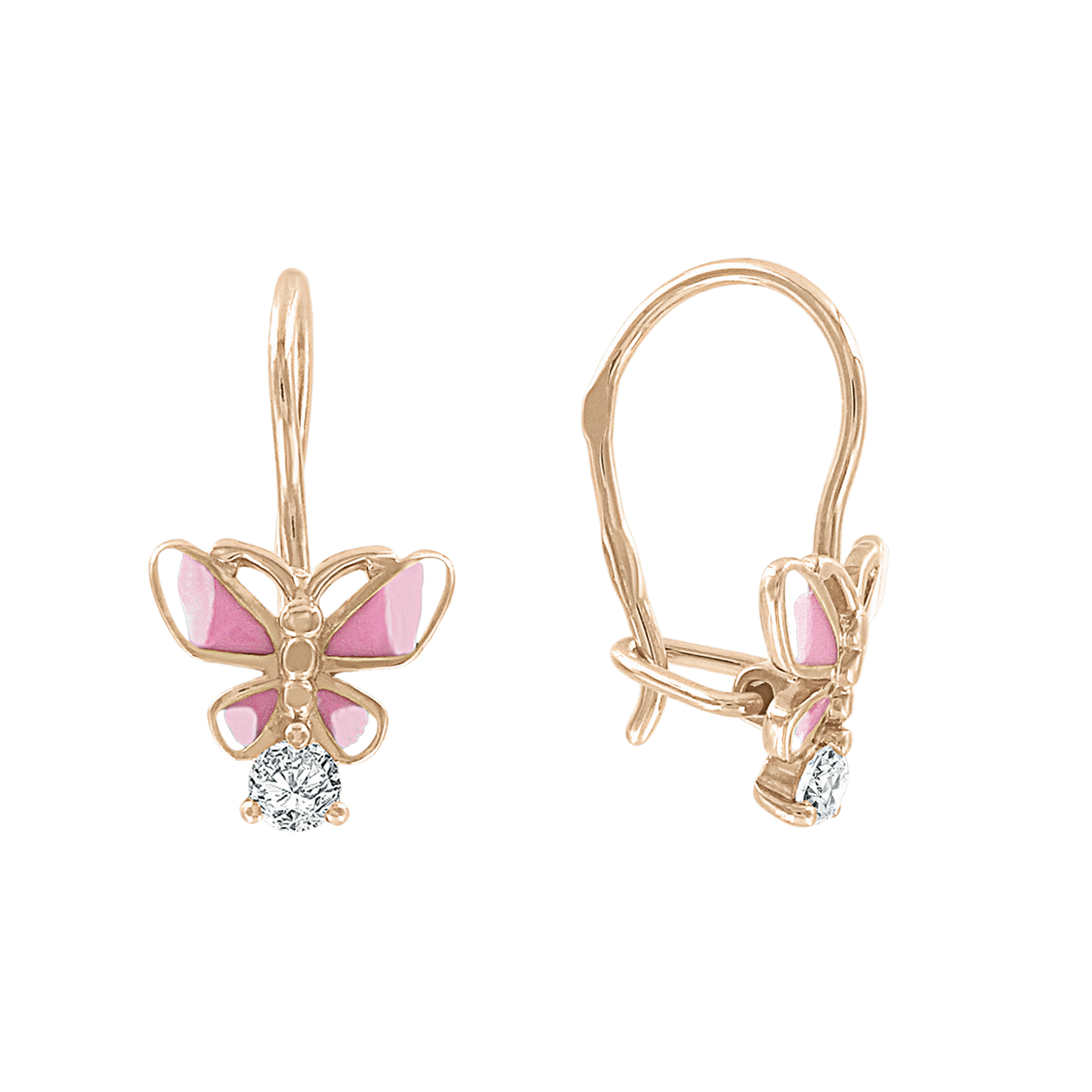 Zarte Ohrringe in Schmetterlingsform aus 585er Rotgold, mit Zirkonia, Höhe ≈ 15 mm