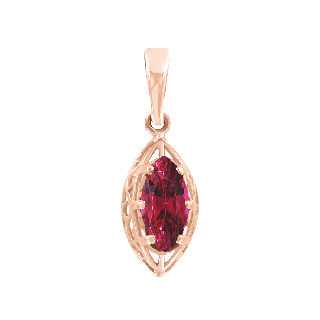 Hübscher Anhänger aus 585er Rotgold mit hydrothermalem Rubin, Höhe ≈ 26 cm