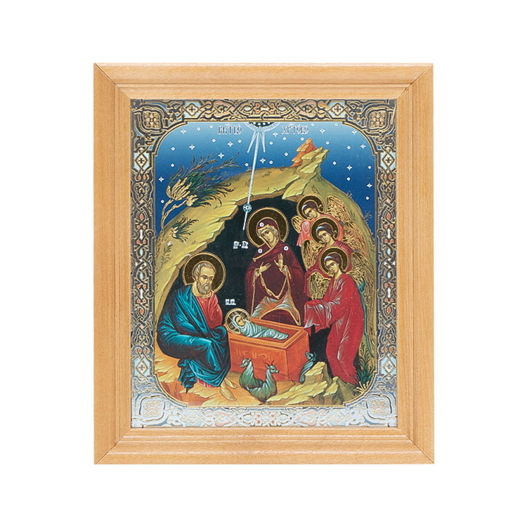 Ikone "Geburt Christi" Holzumrahmung, unter Glas, 11 x 13 cm
