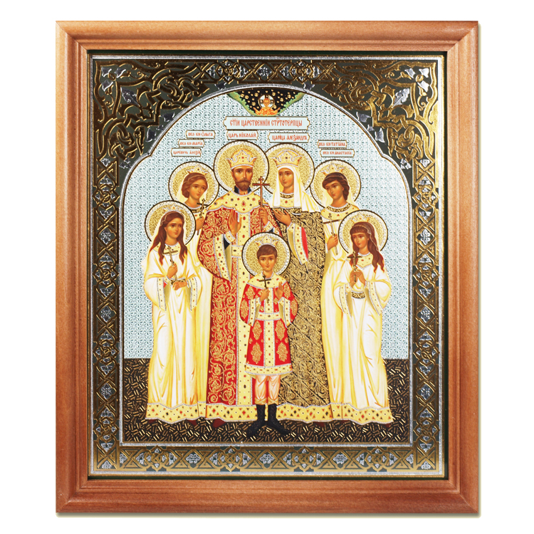 Ikone "Königliche Familie" Holzumrahmung, Doppelprägung, 20 x 24 cm