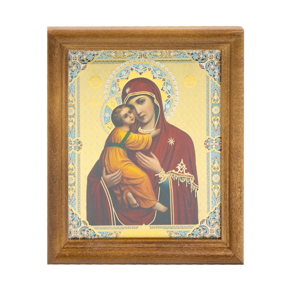 Ikone "Wladimir BM" Holzumrahmung, Doppelprägung, 11 x 13 cm