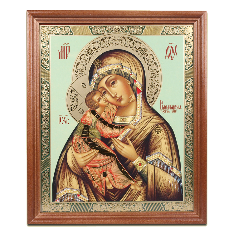 Ikone "Wladimirskaja" Holzumrahmung, unter Glas, 20 x 24 cm