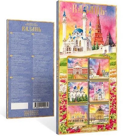 Entdecken Sie den edlen Geschmack dunkler Schokolade mit dem Schokoladenset "Kazan" – einer feinen Komposition mit 60 % Kakaoanteil, die für intensiven Geschmack, feine Bitternoten und zartschmelzende Konsistenz steht. Die hochwertige Schokolade überzeugt nicht nur durch ihren vollmundigen Charakter, sondern auch durch ihre optische Aufmachung:Das liebevoll gestaltete Verpackungsdesign zeigt verschiedene, eindrucksvoll illustrierte Ecken der wunderschönen Stadt Kasan – von historischen Gebäuden bis hin zu kulturellen Wahrzeichen. Jede Tafel ist somit nicht nur ein kulinarisches, sondern auch ein visuelles Erlebnis.