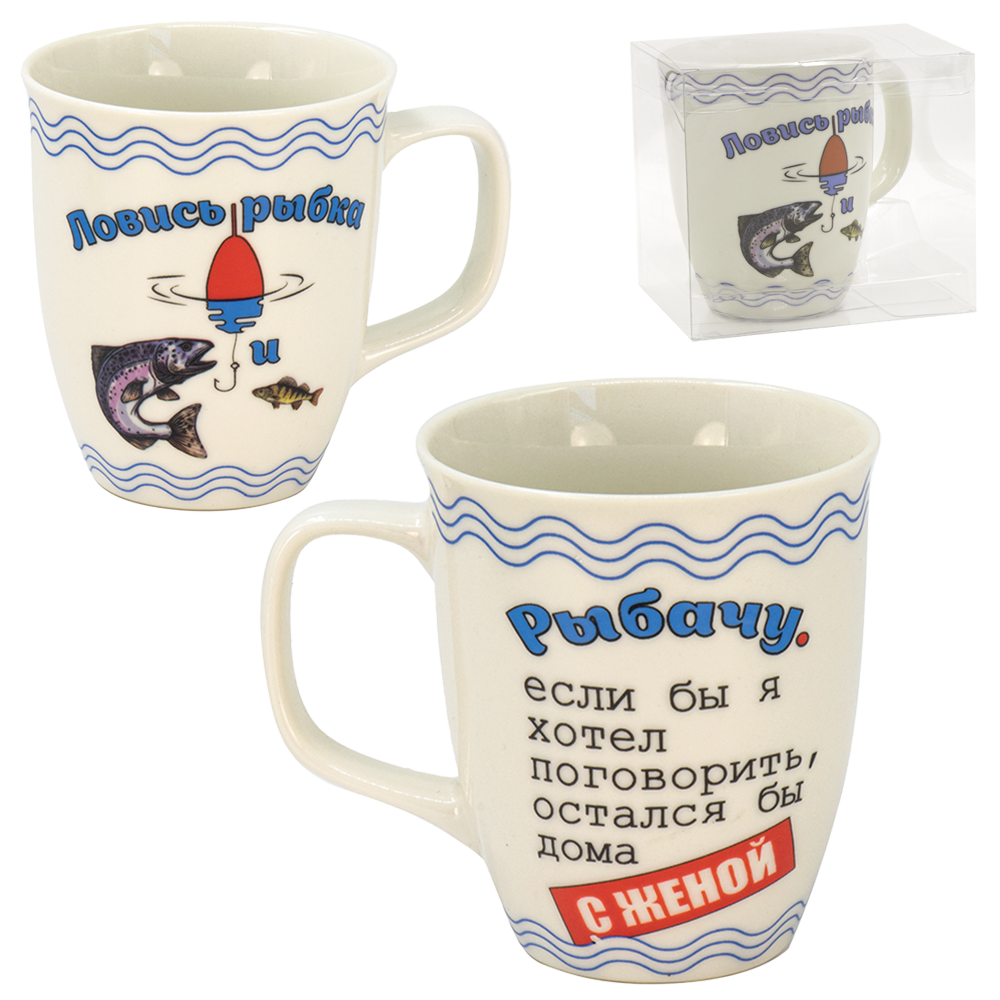 Der Becher ist aus umweltfreundlichem, hochwertigen Porzellan mit feinem Glanz gefertigt. Die Tasse hat ein attraktives thematisches Design in Form eines Schriftzuges auf russisch "Fisch fang dich".Dieser stylische Becher ist ideal für den täglichen Bedarf - ob im Büro oder Zuhause.