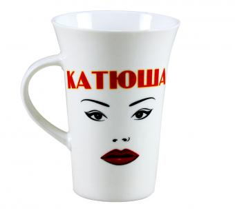 Der Becher ist aus umweltfreundlichem, hochwertigem Porzellan mit feinem Glanz gefertigt. Er hat ein attraktives thematisches Design in Form eines Schriftzuges auf russisch "Katjuscha".Dieser stylische Becher ist ideal für den täglichen Bedarf - ob im Büro oder Zuhause.