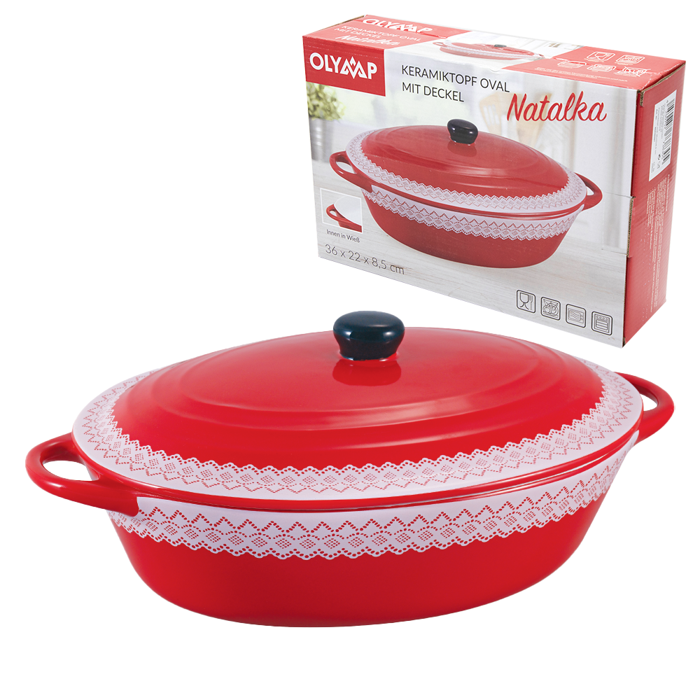 Keramiktopf mit Deckel "Natalka" oval, rot, 36 x 22 x 8,5 cm