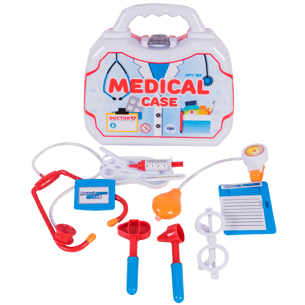 Im Spielkoffer ist alles drin, was ein kleiner Doktor braucht und dieser steht bei allen Kindern hoch im Kurs. Kein Wunder, denn die Kleinen finden den Arztbesuch doch mehr als aufregend.Das Set besteht aus insgesamt 12 medizinischem Zubehörteilen: