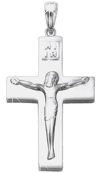 Klassisches Kreuz mit Kruzifix aus Sterlingsilber, graviert, Höhe ≈ 45 mm