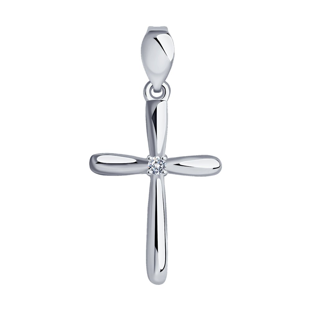 Attraktiver Anhänger - Kreuz aus 585 Weißgold 1 Zirkonia, Breite ca. 13 mm, Höhe ca. 25 mm