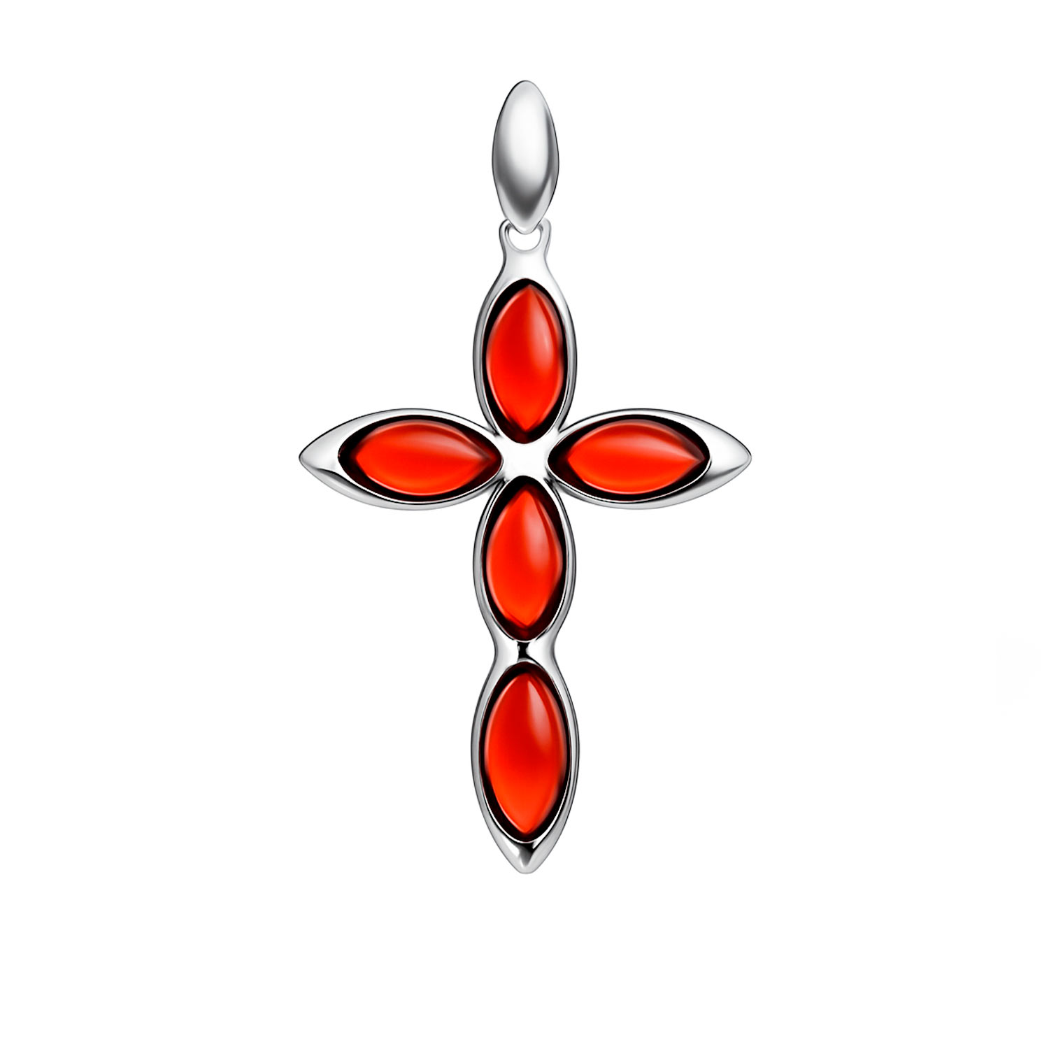 Kreuz Anhänger aus 925 Silber mit Kirschbernstein