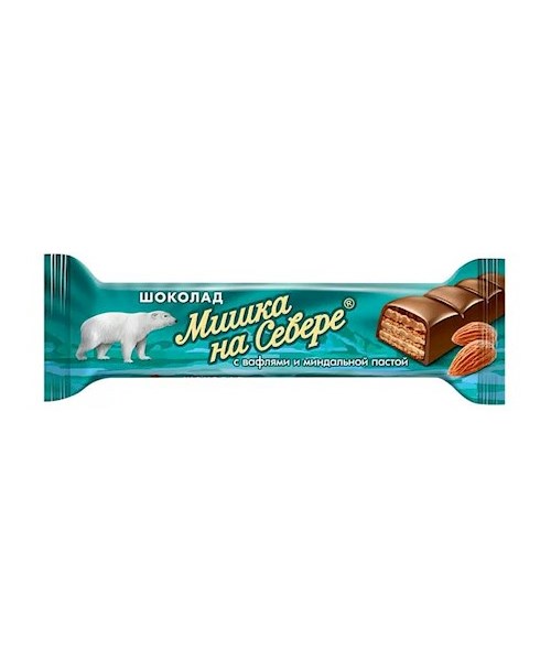 Entdecken Sie den legendären russischen Schokoriegel "Bär im Norden" – eine perfekte Kombination aus knusprigen Waffelschichten, zarter Mandelcreme und hochwertiger Milchschokolade.Eigenschaften: