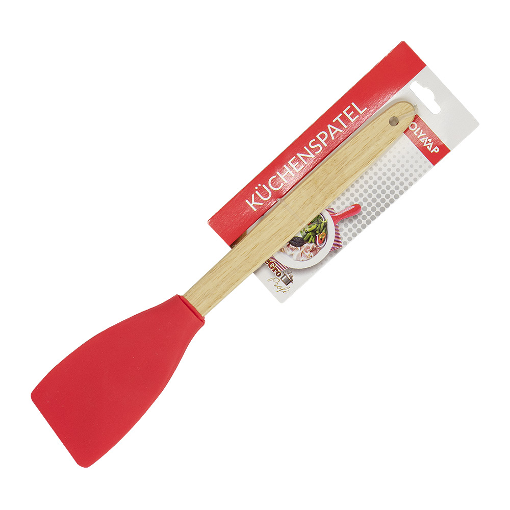 Der Silikonspatel ist ein stilvoller und zuverlässiger Küchenhelfer. Die Spitze ist aus hochwertigem Silikon gefertigt. Dank seiner Flexibilität kann er alle Ecken des Geschirrs erreichen. Der Griff ist aus Holz gefertigt und fühlt sich angenehm an.Eigenschaften: