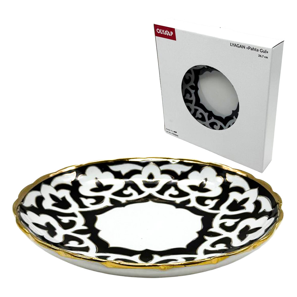 Der Lagan „Pahta Gul“ ist ein Meisterwerk usbekischer Tafelkultur – ein tiefer, handbemalter Prunktteller für Ihre schönsten Gerichte. Mit seinem großzügigen Durchmesser von 26,7 cm und der eleganten Blau-Gold-Optik wird dieser Lagan zum Mittelpunkt jeder festlichen Tafel. Ob für duftenden Usbekischen Plov, frische Salate, saisonales Obst oder als imposante Servierplatte für Fleisch- und Gemüsegerichte: Jedes Essen wirkt hier wie ein Kunstwerk. Dieses Unikat, gefertigt von usbekischen Kunsthandwerkern, verbindet jahrhundertealte Tradition mit moderner Gastfreundschaft.