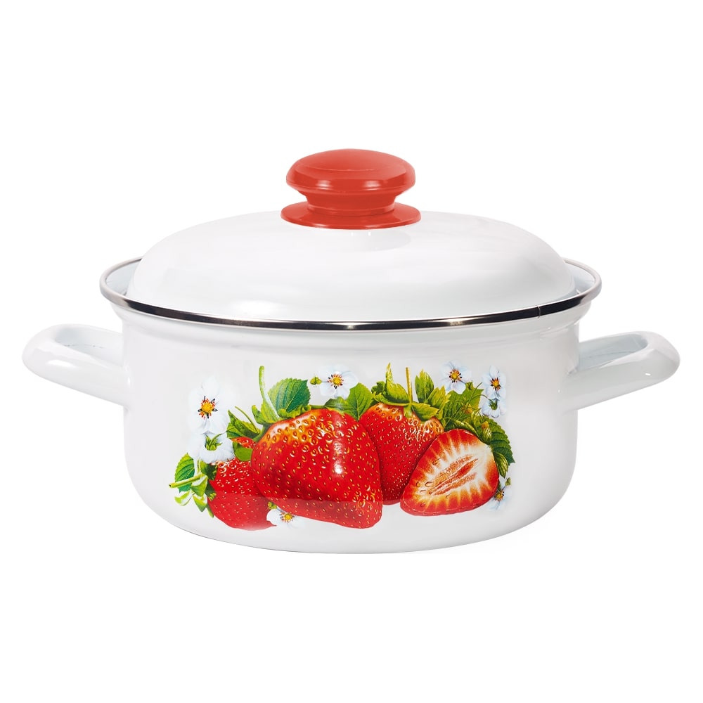 Lysvenskiye Emaillen emaillierter Kochtopf Erdbeere, 1,5 L