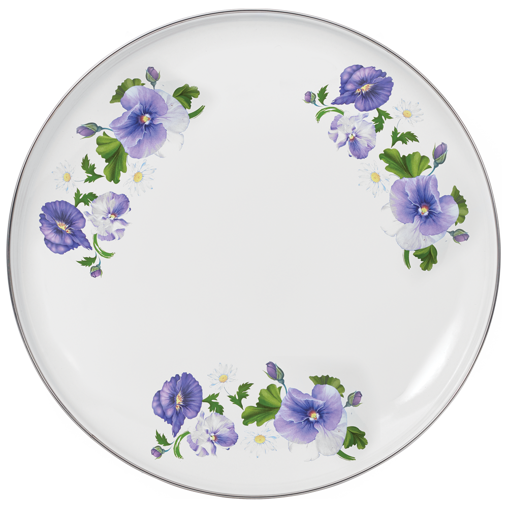 Lysvenskiye Emaillen runde Platte ∅36 cm Stiefmütterchen emailliert, 2,5 L
