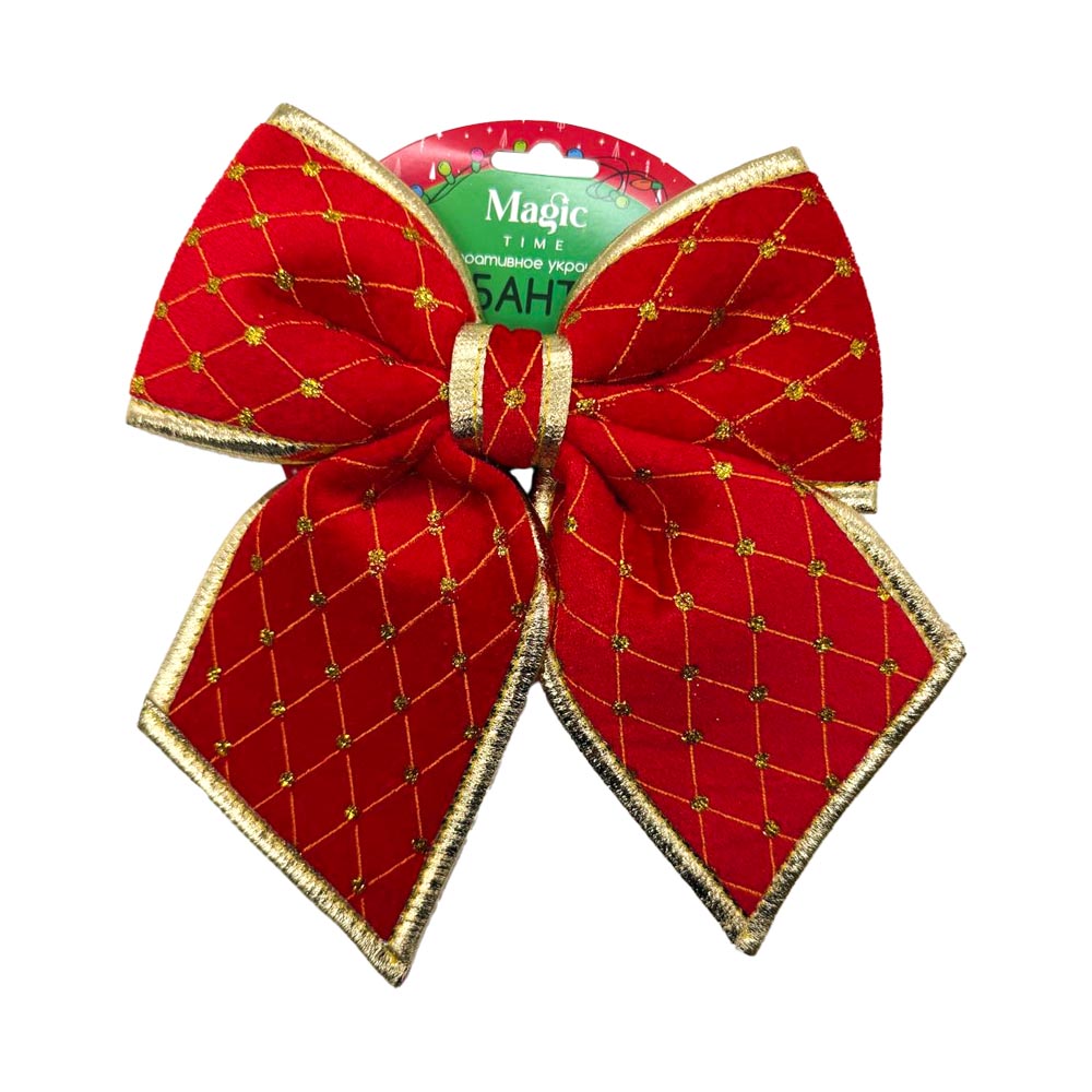 Das "Magic Time" Schleifenband vereint modernes Design mit festlicher Eleganz. Die 20 x 25 cm große Schleife überzeugt durch ihr leuchtendes Rot mit geometrischem Goldmuster und einer samtförmigen Oberfläche. Der goldene Rand betont die edle Form und macht sie zum vielseitigen Blickfang in Ihrer Weihnachtsdekoration. Perfekt für Weihnachtsbäume, Türen, Wände, Fenster oder als besonderes Geschenkband - diese Schleife verbreitet sofort festliche Stimmung.Eigenschaften: