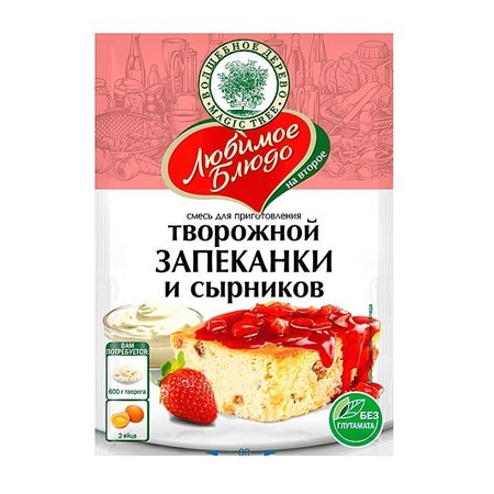 Zubereitung: Hüttenkäse mit Eiern mischen, Inhalt des Beutels hinzufügen, mischen. In eine gefettete Auflaufform legen. Im Backofen bei 180-200 °C 50 Minuten backen. Aus dem entstandenen Quark können Sie Käsekuchen machen. Nehmen Sie die Quarkmasse mit einem in Wasser getauchten Löffel, rollen Sie das Mehl von allen Seiten und formen Sie runde Kuchen. Die Cheesecakes in einer mit Pflanzenöl vorgeheizten Pfanne von beiden Seiten weich braten.