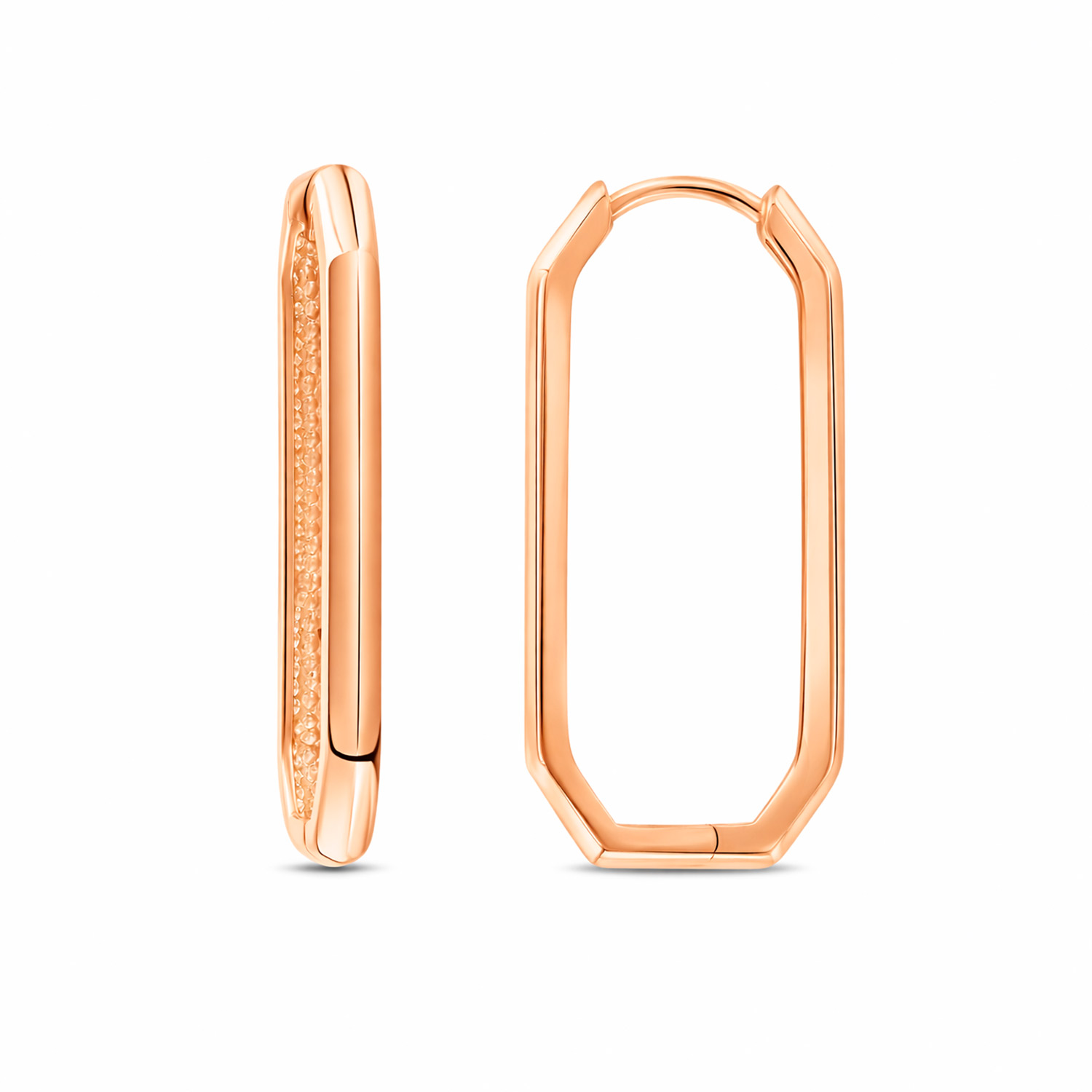 Das verlängerte, kantige Design verleiht dem Schmuckstück einen klaren, minimalistischen Charakter. Durch ihre schlichte Eleganz sind die Ohrringe vielseitig kombinierbar – sie passen sowohl zum täglichen Outfit als auch zu eleganten Abendlooks. Der sichere Verschluss garantiert angenehmen Tragekomfort, während der edle Glanz des Rotgoldes die Raffinesse der Ohrringe unterstreicht.Ein stilvolles Accessoire für Frauen, die zeitgenössische Trends mit klassischer Eleganz verbinden möchten.