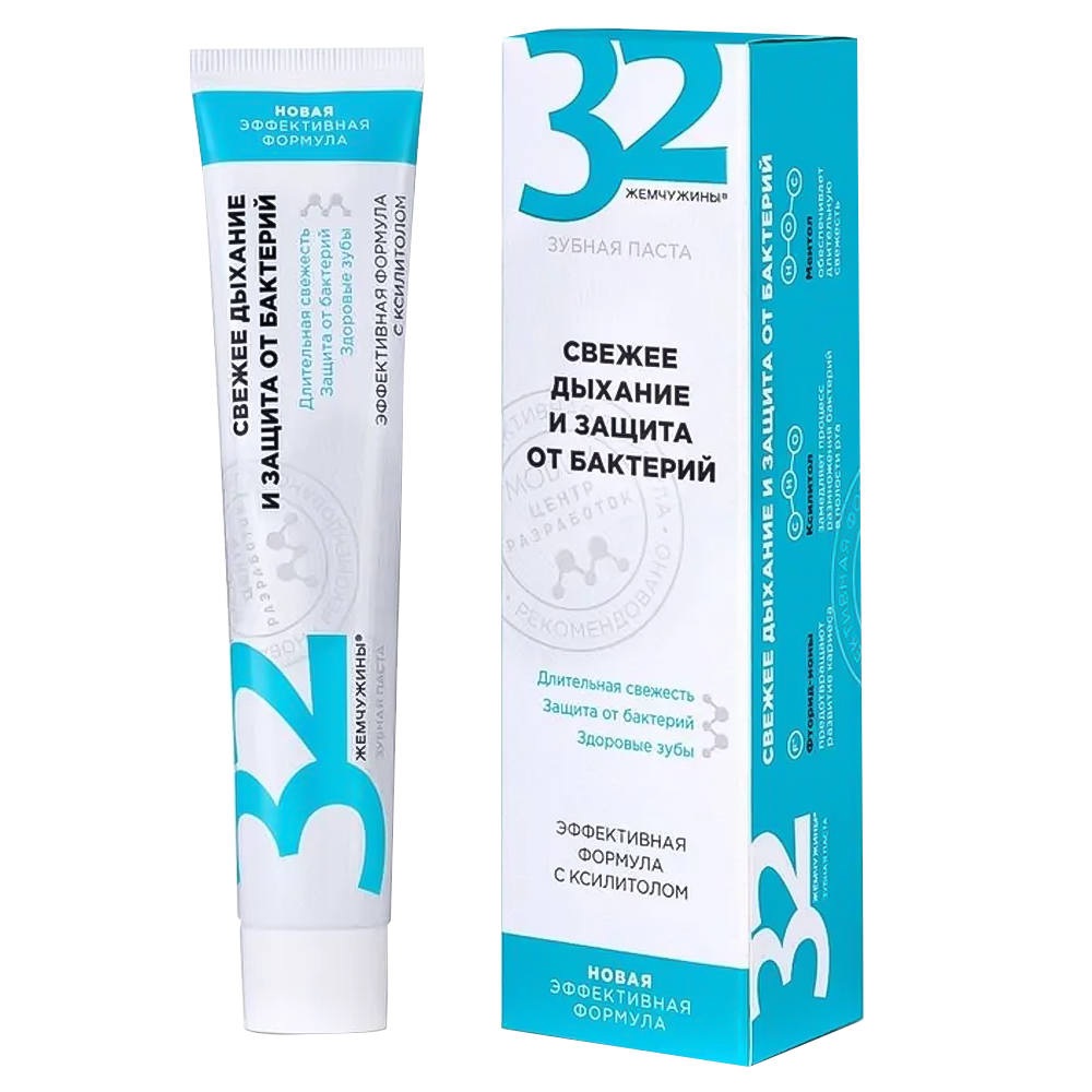 • Die Zahnpasta 32 Perlen ist ein wirksames Mittel für frischen Atem und Schutz vor Bakterien.