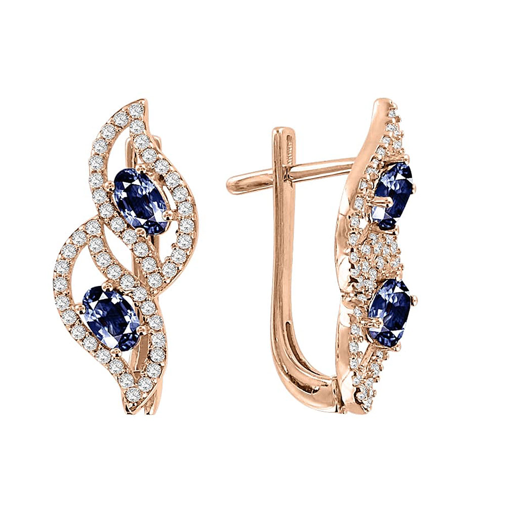 Strahlende Ohrhänger aus 585er Roségold mit Zirkonia und blauem Saphir HTS