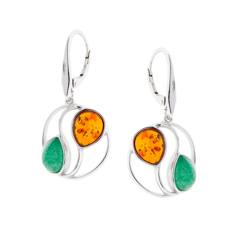 Ohrhänger aus 925 Silber mit Cognac-Bernstein und grünem Quarz