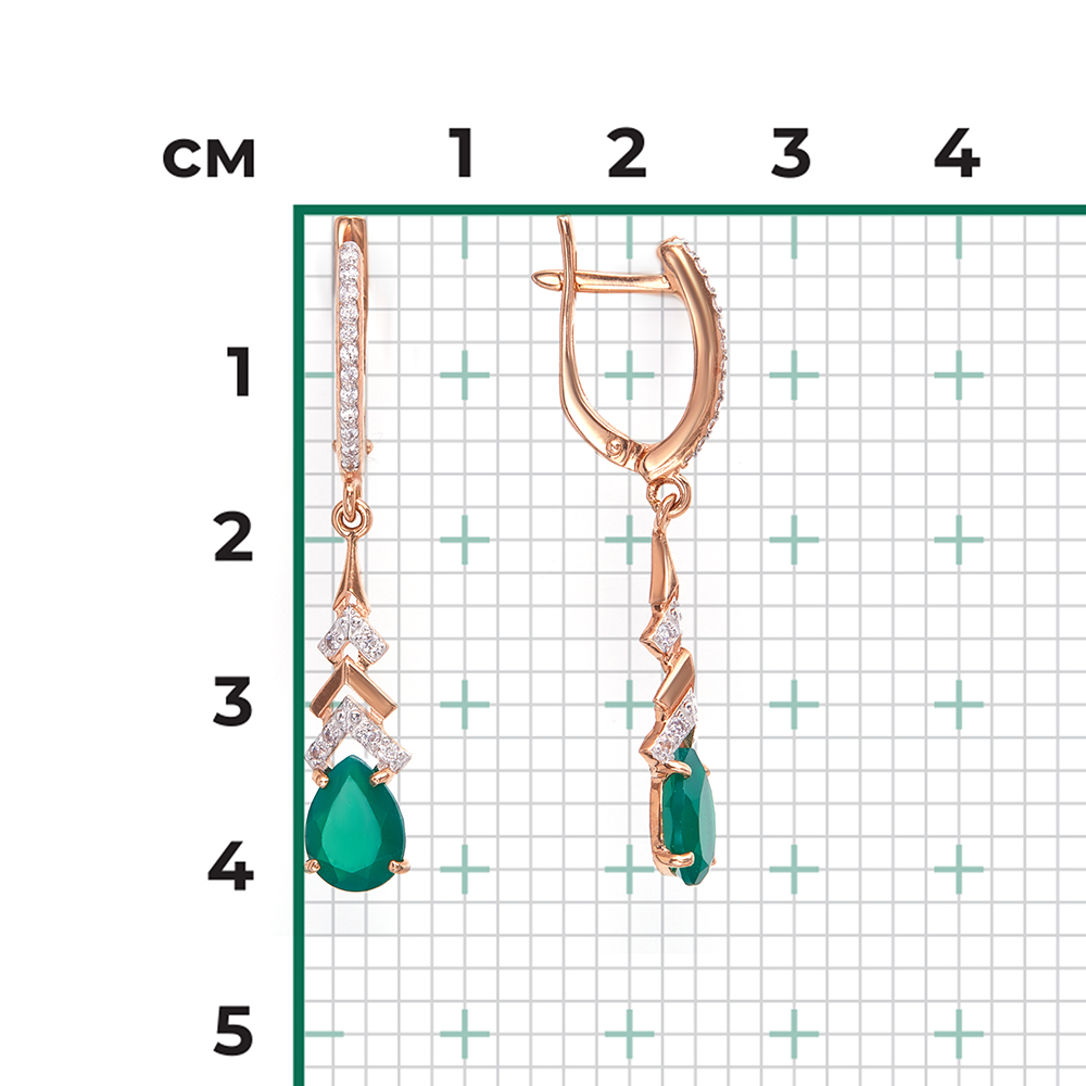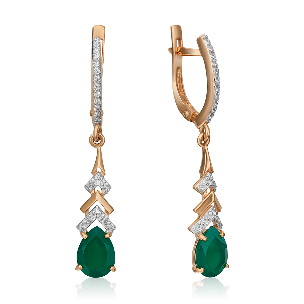 Diese eleganten Ohrhänger verbinden das warme Strahlen von Rotgold mit der lebendigen Tiefe eines grünen Chalzedons.