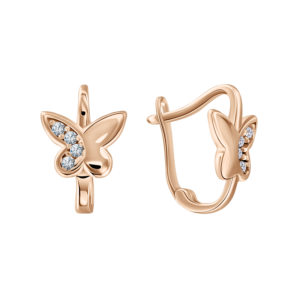 Rotgold hat eine gute Elastizität und wird für die Herstellung von interessantem Schmuck verwendet. Dieses Produkt wird in Form von „Schmetterlingen“ präsentiert, es ist die Verkörperung von Schönheit und Leichtigkeit. Schöne Ohrringe, die ihre Besitzerin mit ihrem Glanz und Charme begeistern werden.GPSR-Informationen