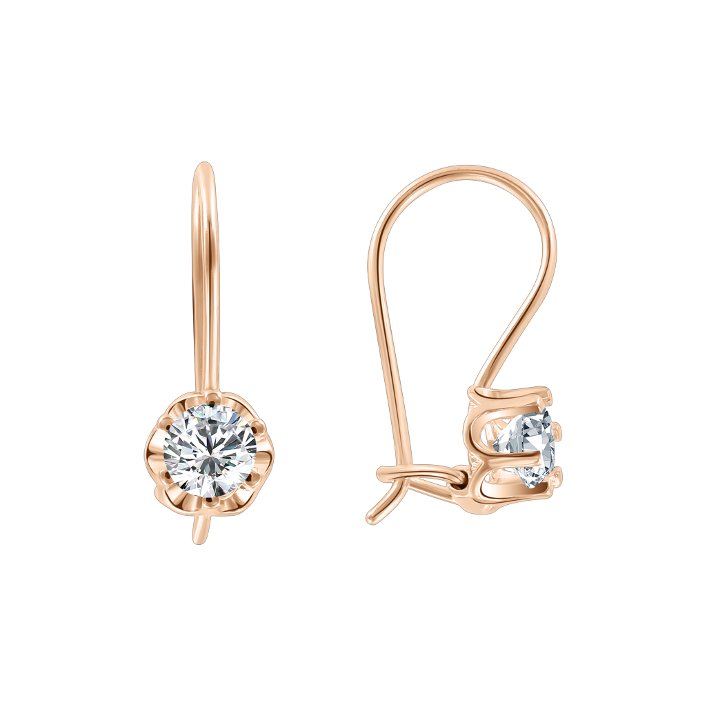 Attraktive Ohrringe aus 585er Rotgold, mit Einlagen aus Zirkonia, Höhe ≈ 16 mm, mit englischem Verschluss.