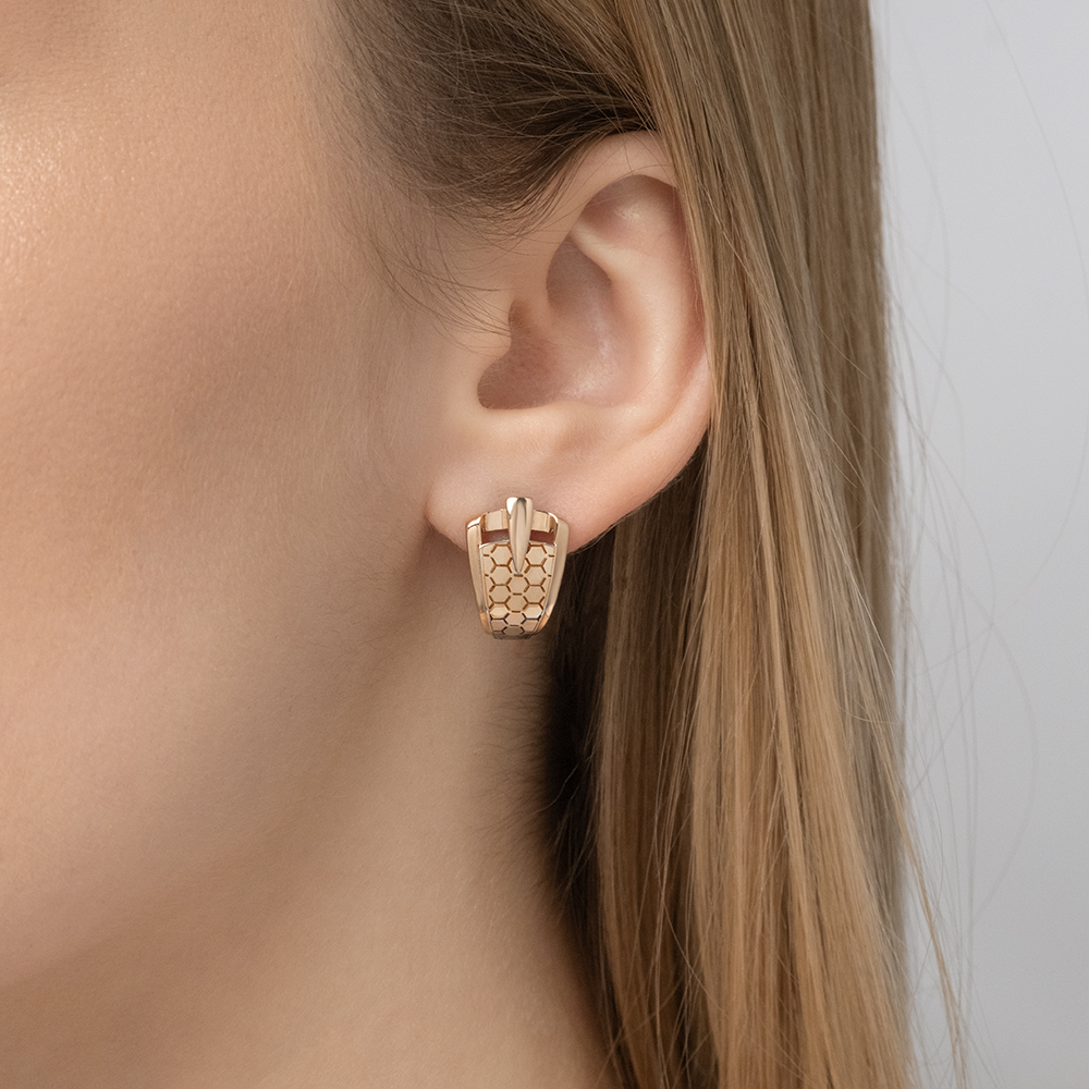 Diese stilvollen Ohrringe aus 585er Rotgold begeistern mit ihrem modernen Design und der markanten Wabenstruktur. Die klare Linienführung und das geometrische Muster schaffen eine harmonische Balance aus Eleganz und Ausdrucksstärke. Die hochglanzpolierte Oberfläche unterstreicht den edlen Charakter der Ohrringe, während der komfortable Klappverschluss sicheren Halt garantiert.Ob solo getragen oder in Kombination mit dem passenden Anhänger – dieses Schmuckstück ist ein zeitloser Blickfang für jedes Outfit und jede Gelegenheit.