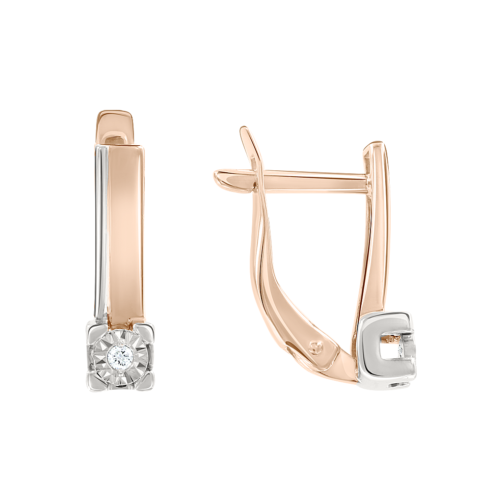Diese eleganten Ohrringe aus 585er Rotgold vereinen klassische Schönheit und zeitlose Raffinesse.Jeder Ohrring ist mit einem funkelnden Brillanten (GSI, insgesamt 0,027 ct) besetzt, der durch seine feine Brillanz und perfekte Fassung betont wird. Die Kombination aus warmem Rotgold und kühlem Weißgold sorgt für einen modernen, zweifarbigen Effekt und unterstreicht die luxuriöse Ausstrahlung des Designs.