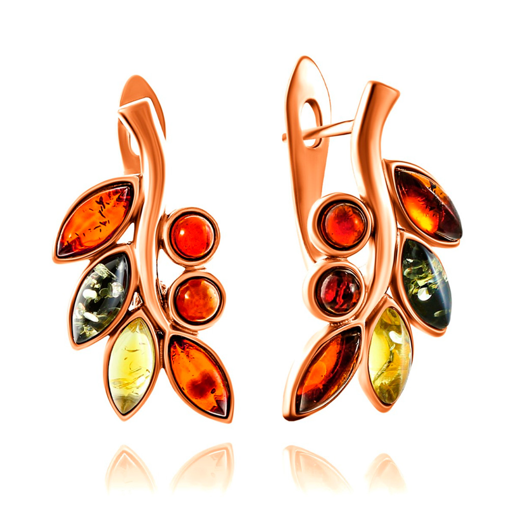 Ohrringe aus 925 Silber im Form einer Weizenähre mit bunten Bernsteinen, vergoldet