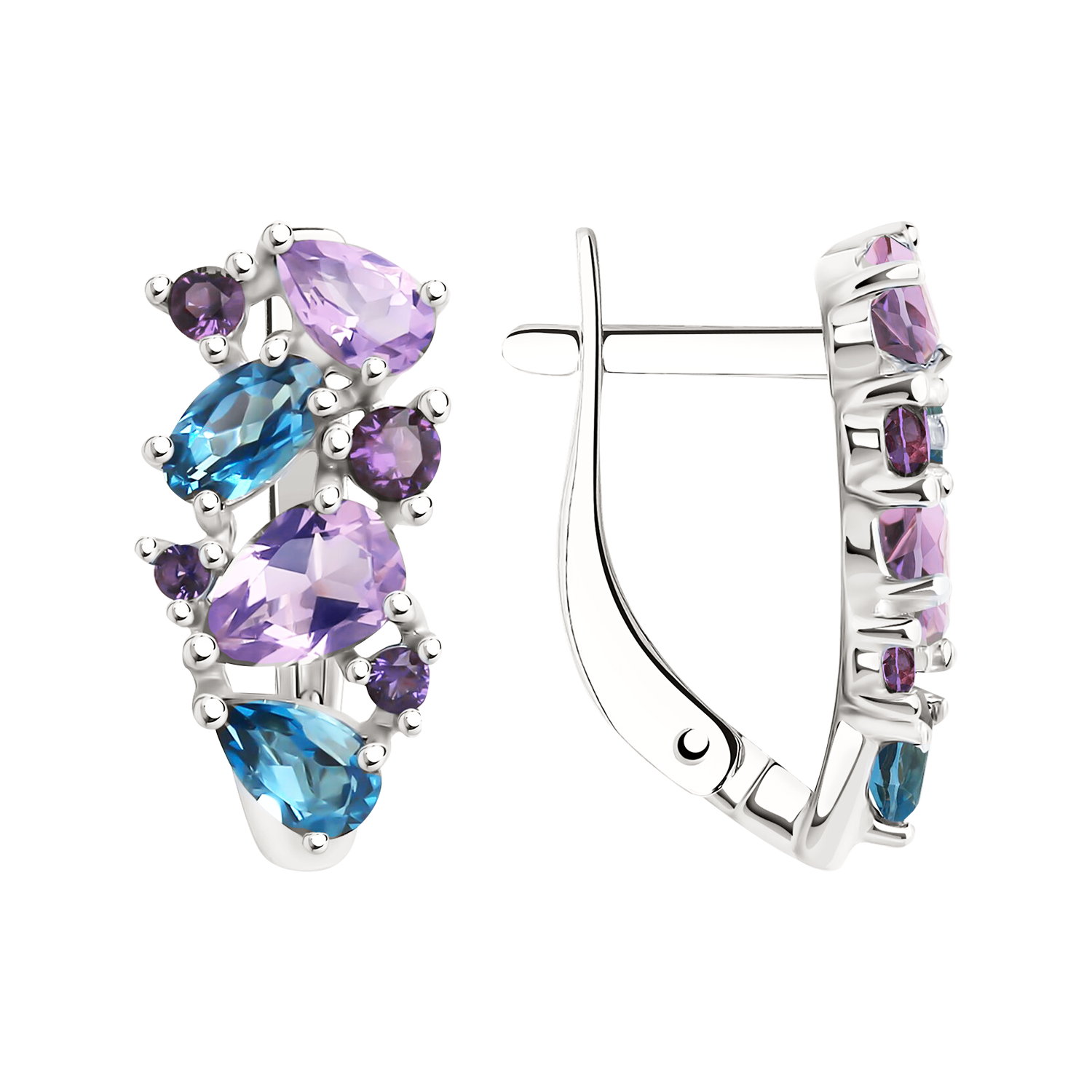 Ohrringe aus 925 Silber mit Amethyst, Zirkonia und Topas, Höhe ca. 18 mm